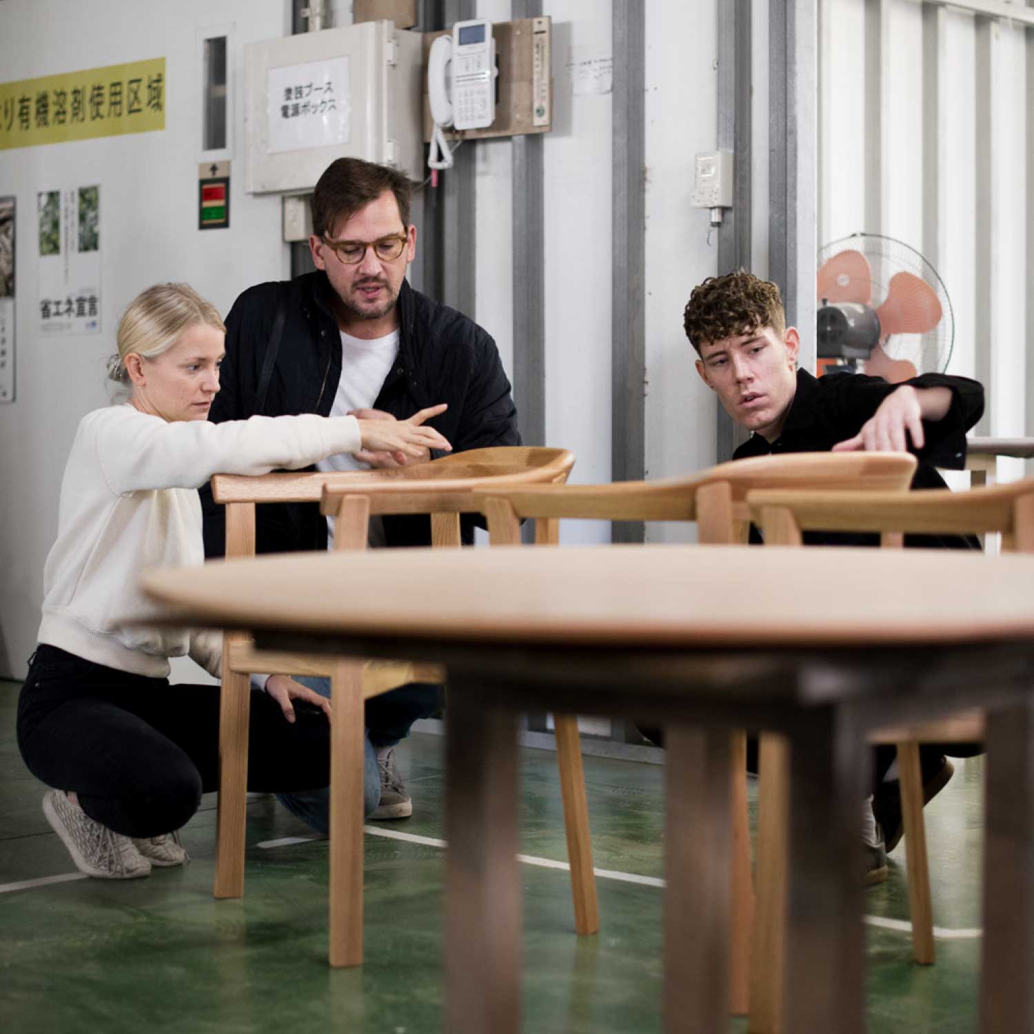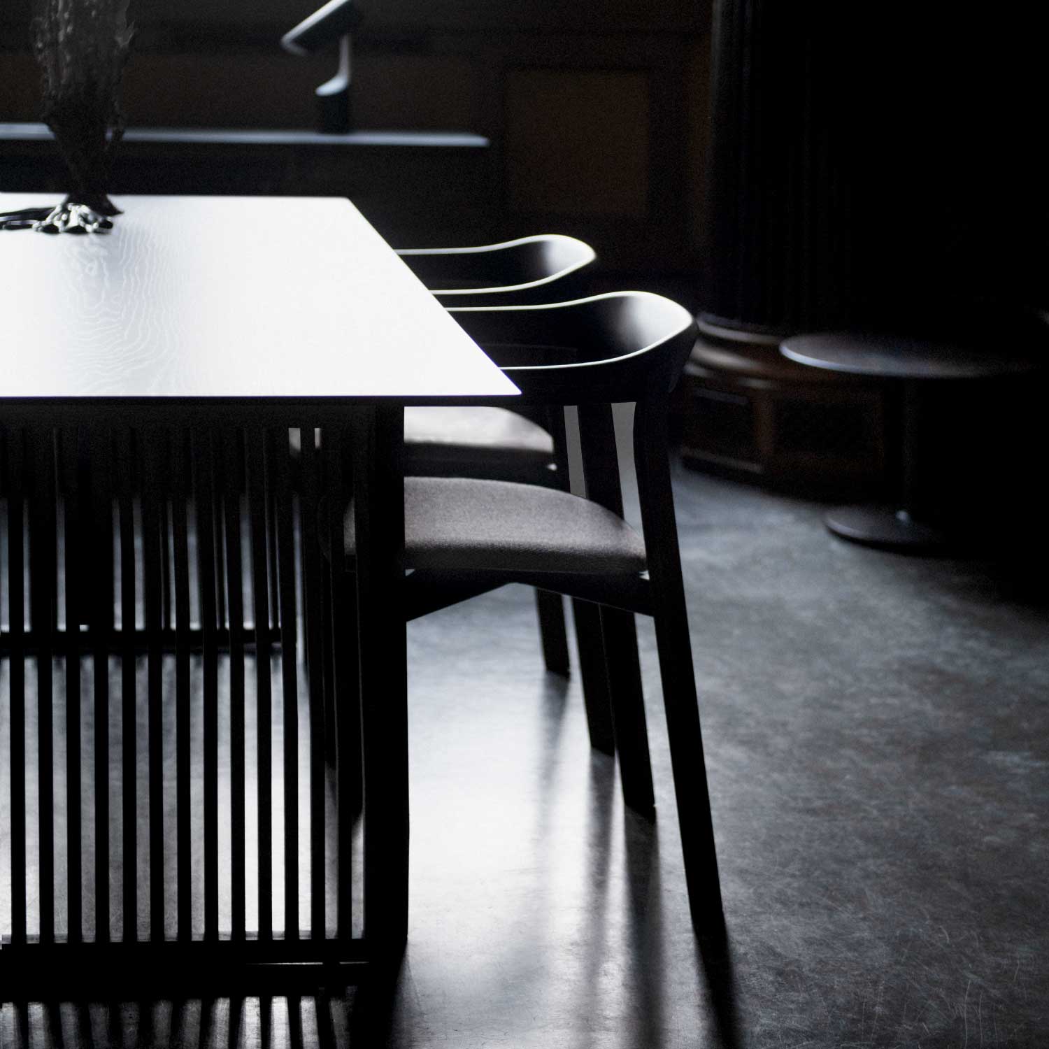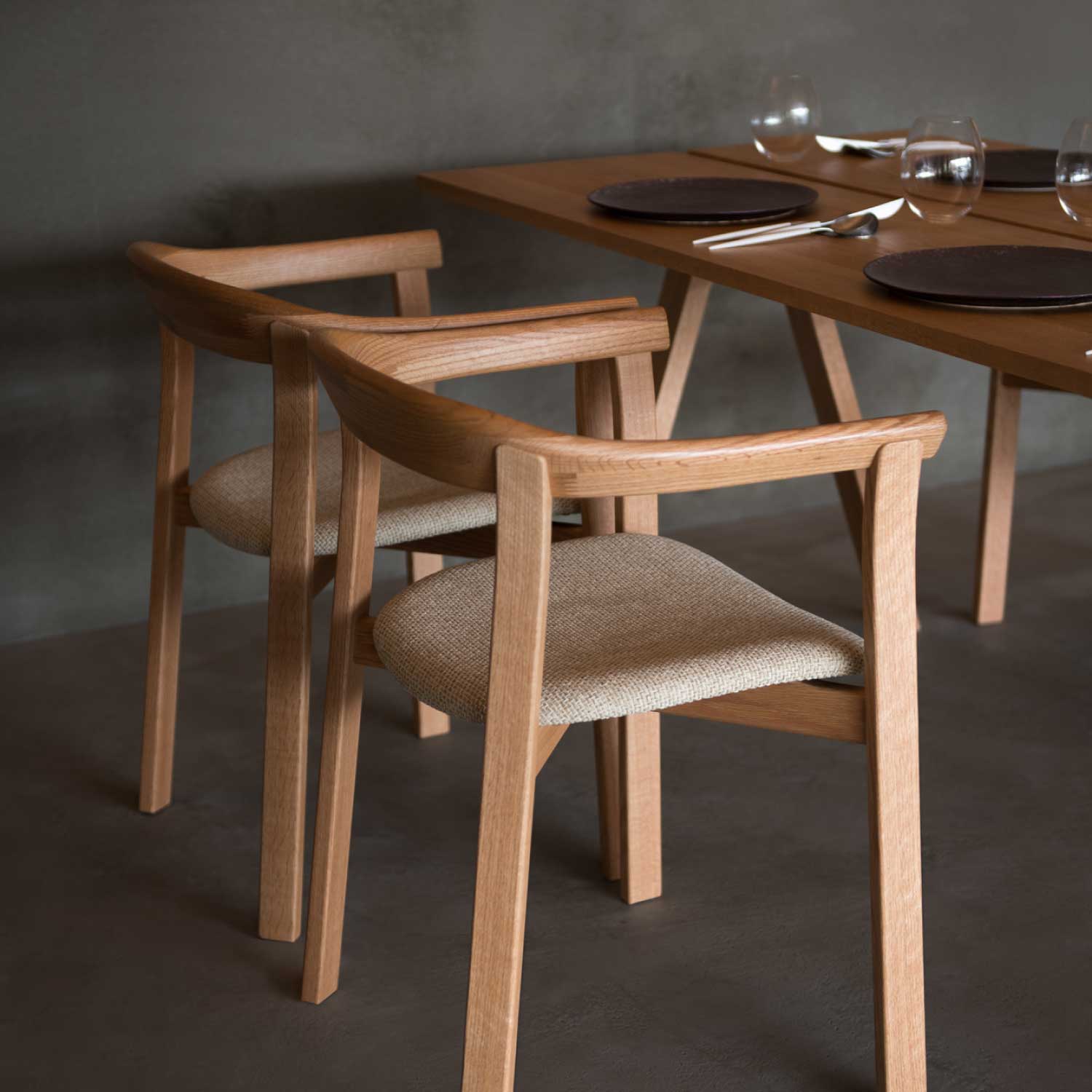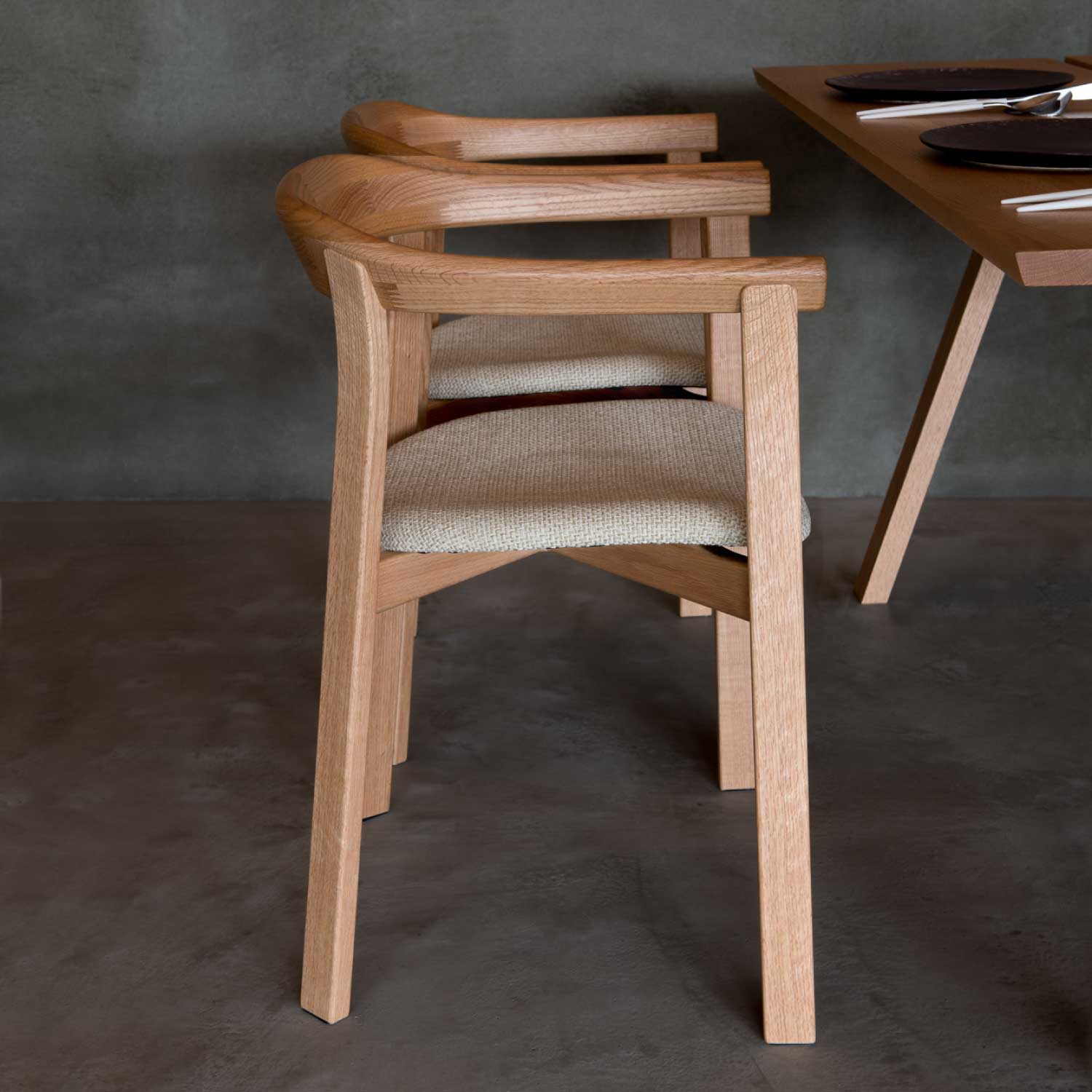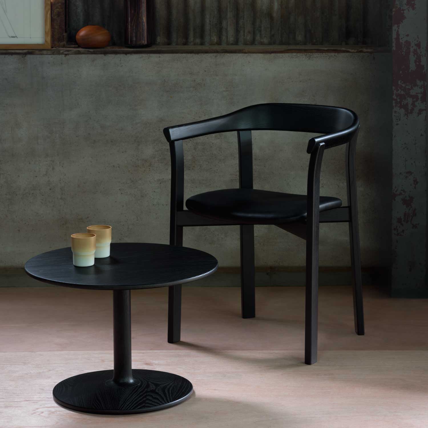 ホルム・チェアは、伝統的な北欧の肘掛け椅子に影響を受け、丈夫な作りと高い快適性を併せ持っています。座面が空中に浮揚するような感覚は、この椅子の軽快感、親しみ易さを生み、どんな場面にもしっくりと馴染みます。肘掛けと脚部の繊細な接続部分に細心の注意を払いました。