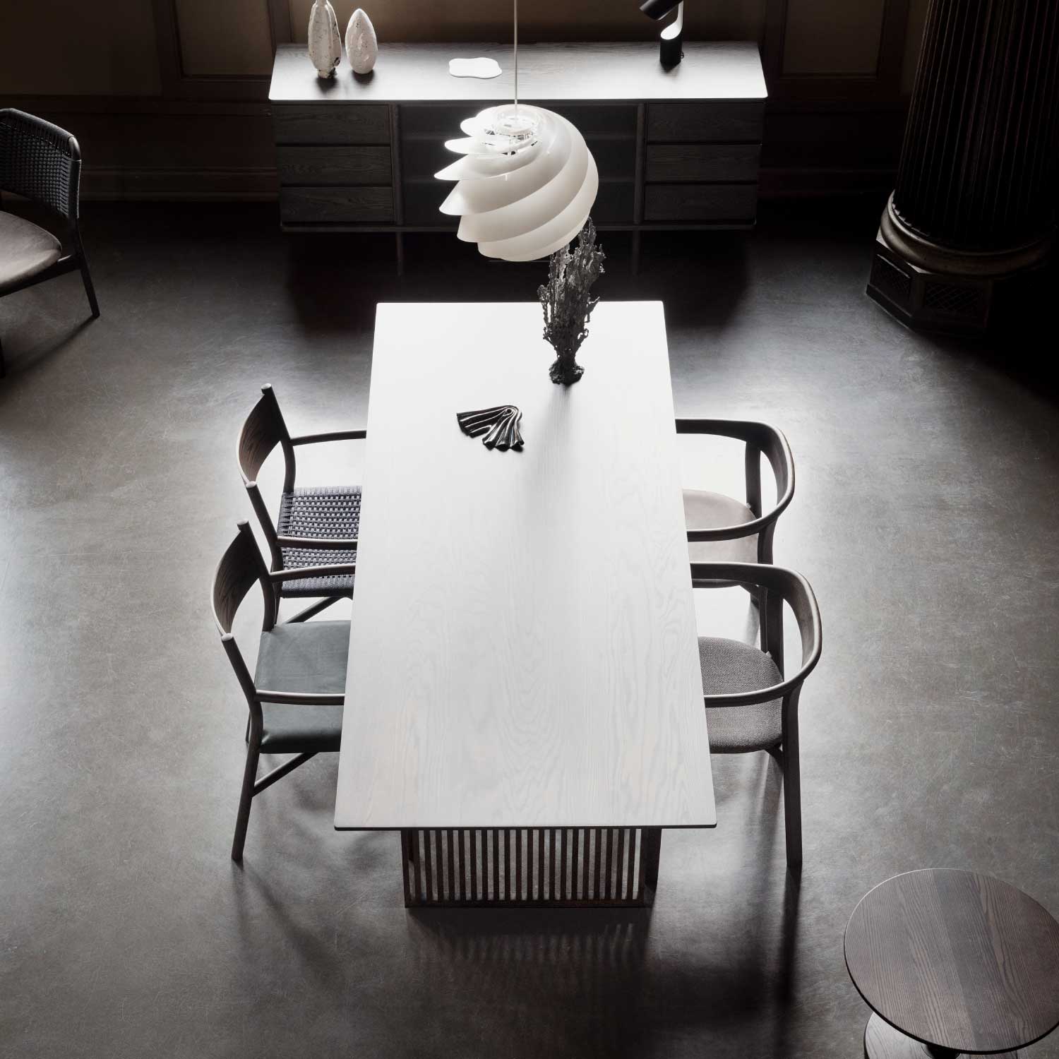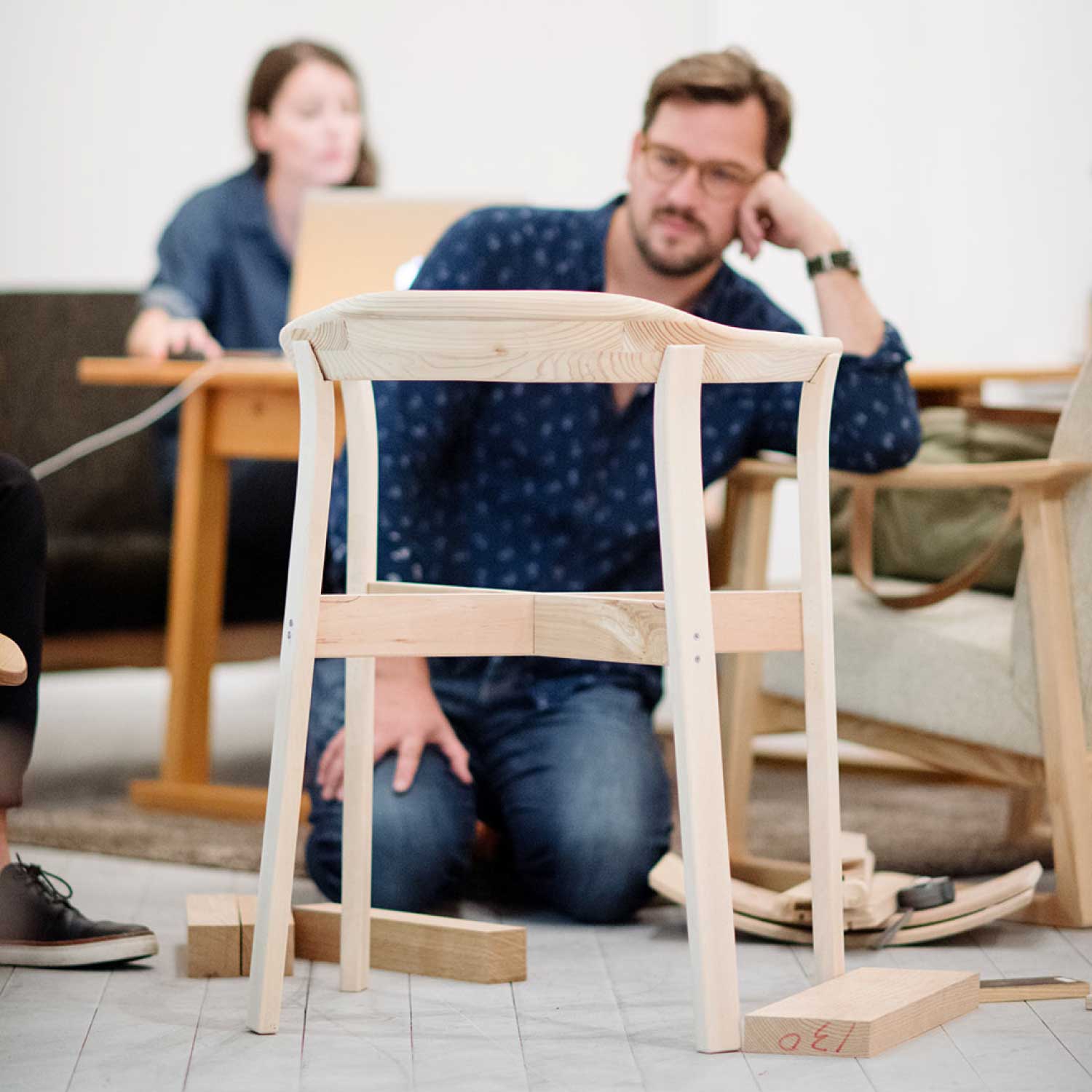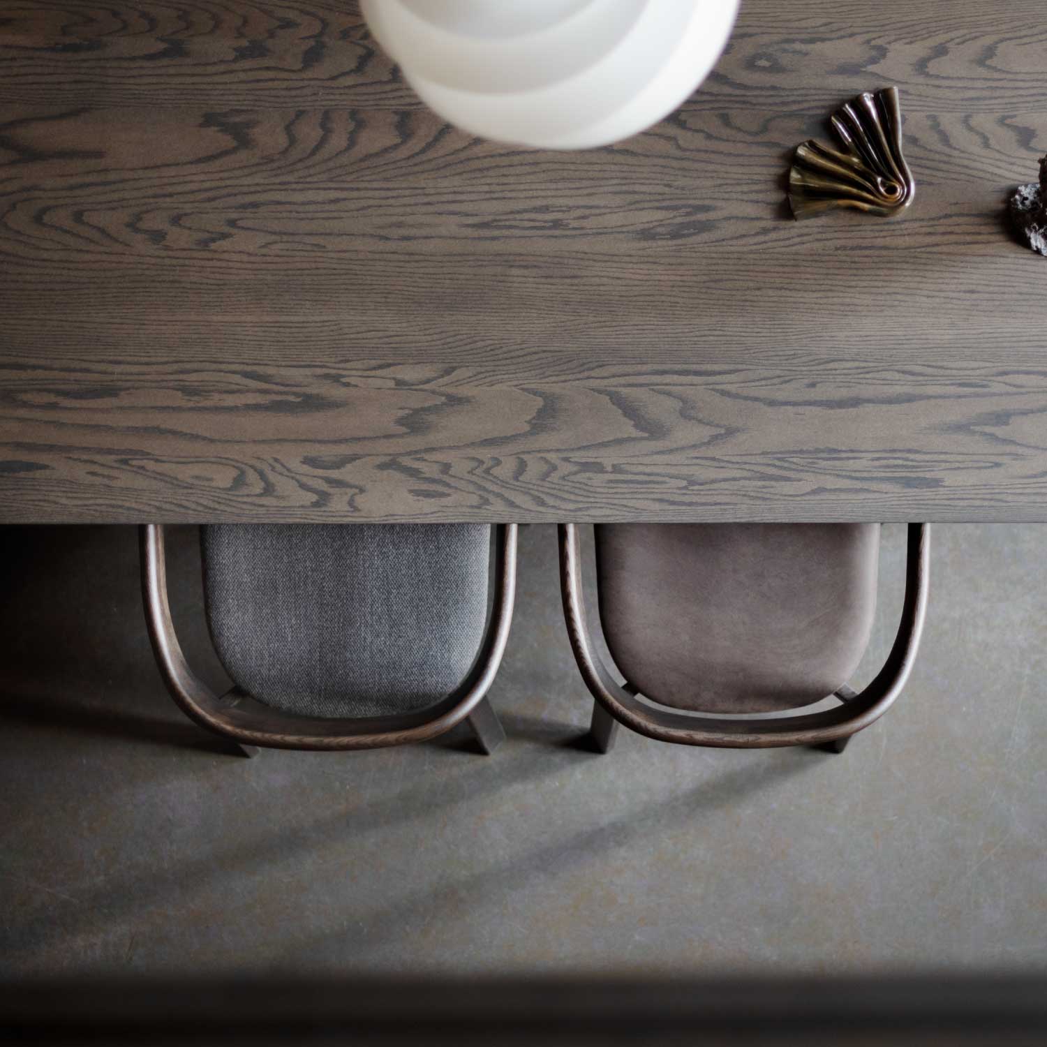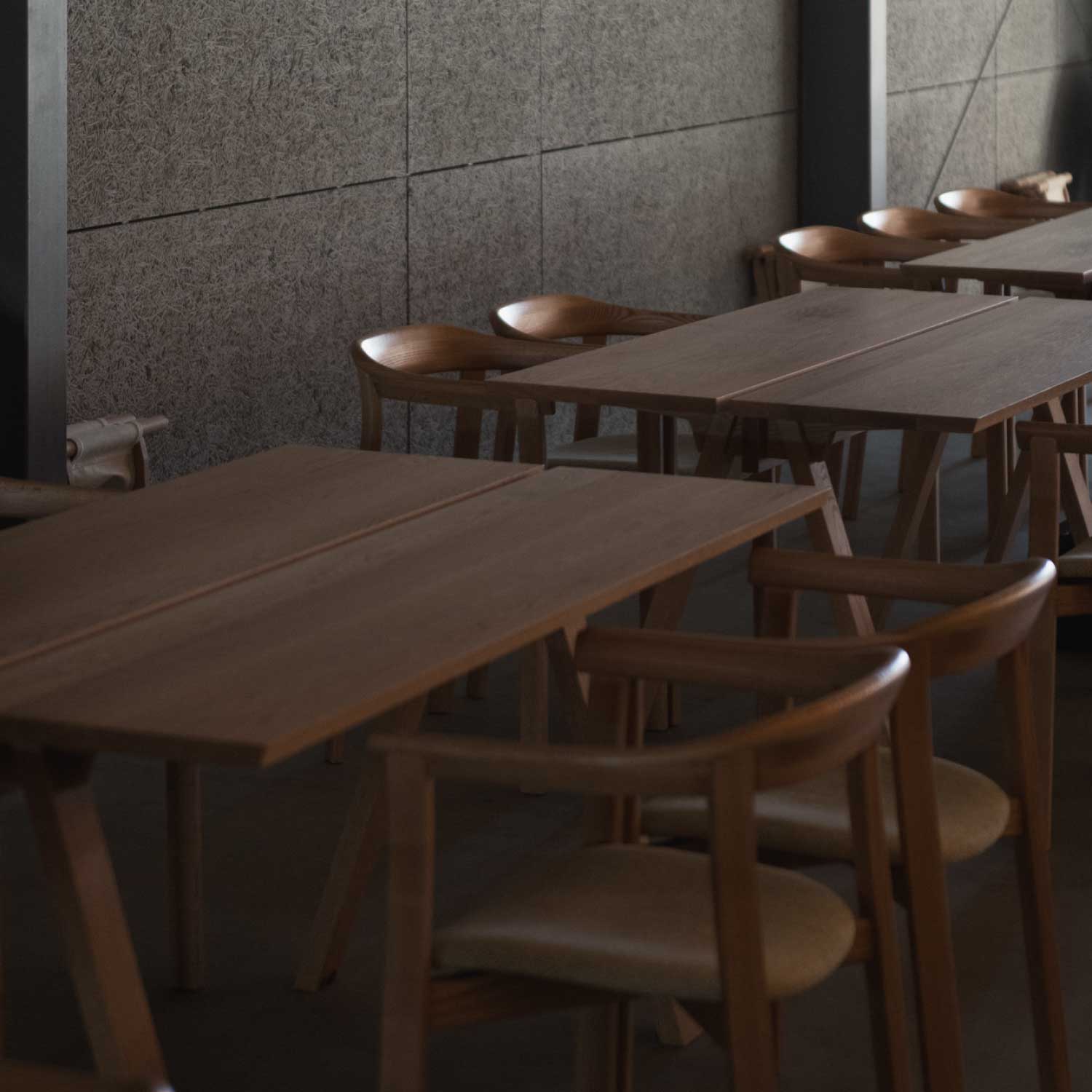 ホルム・チェアは、伝統的な北欧の肘掛け椅子に影響を受け、丈夫な作りと高い快適性を併せ持っています。座面が空中に浮揚するような感覚は、この椅子の軽快感、親しみ易さを生み、どんな場面にもしっくりと馴染みます。肘掛けと脚部の繊細な接続部分に細心の注意を払いました。
