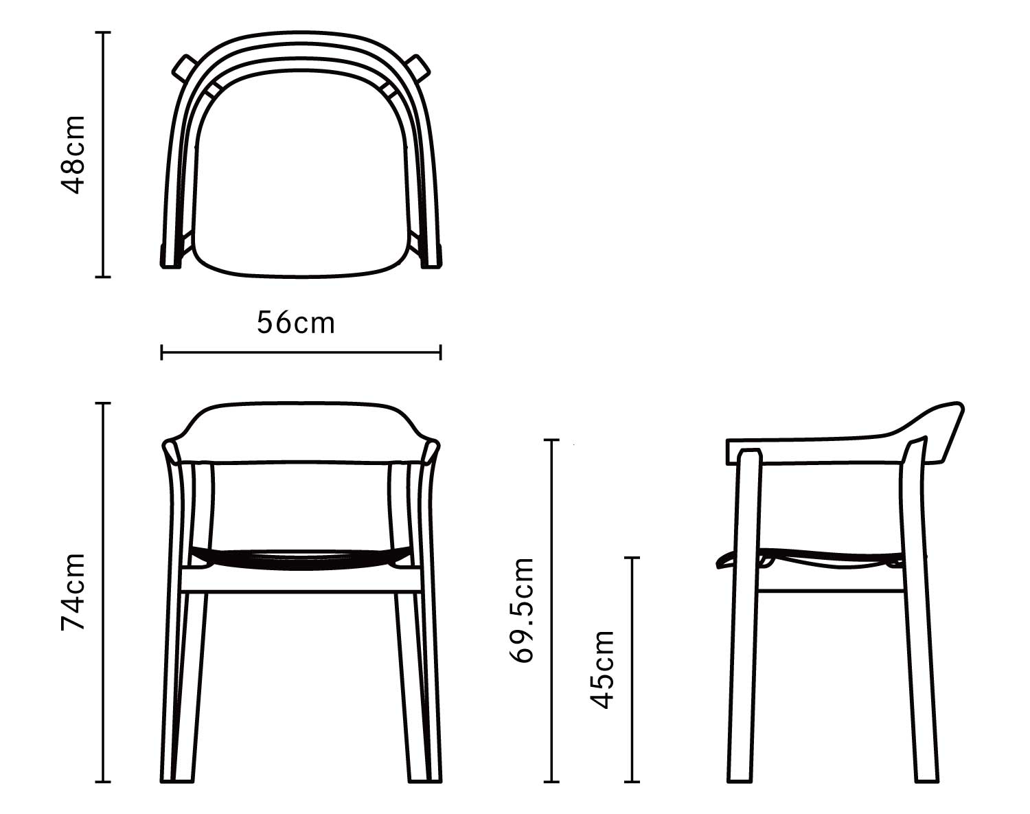 | サイズ | W56 × D48 × H74cm | SH45cm | AH69.5cm |