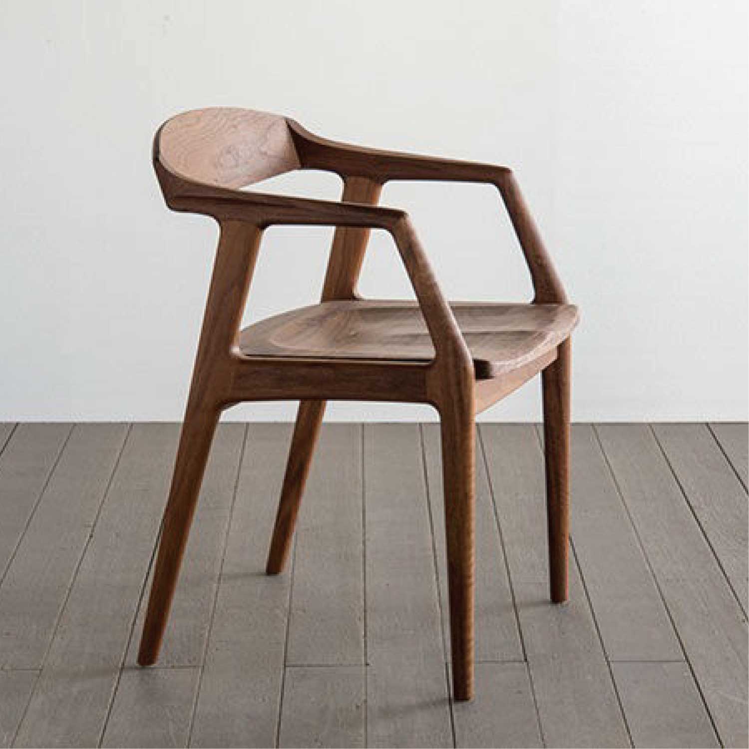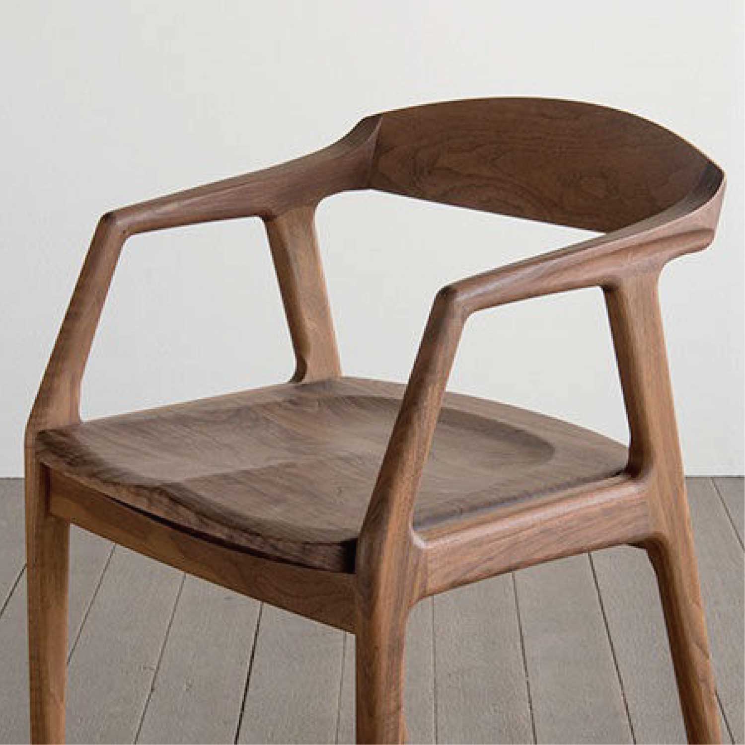 肘から幅広の背に掛けて、ムク材を削り出し一体化したウッディなアームチェアです。
