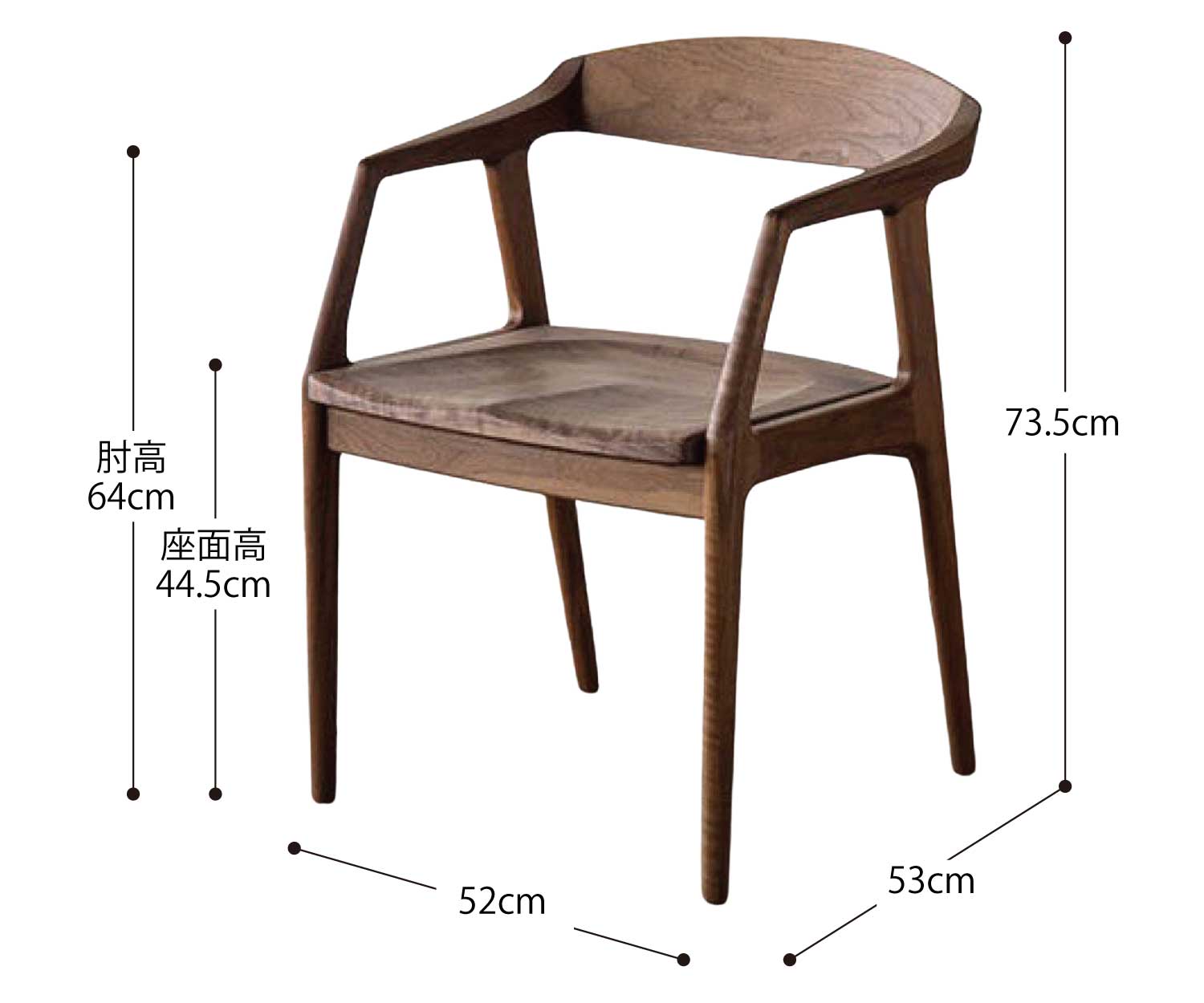 サイズ | W52 × D53 × H73.5cm | SH44.5cm | AH64cm〜 |