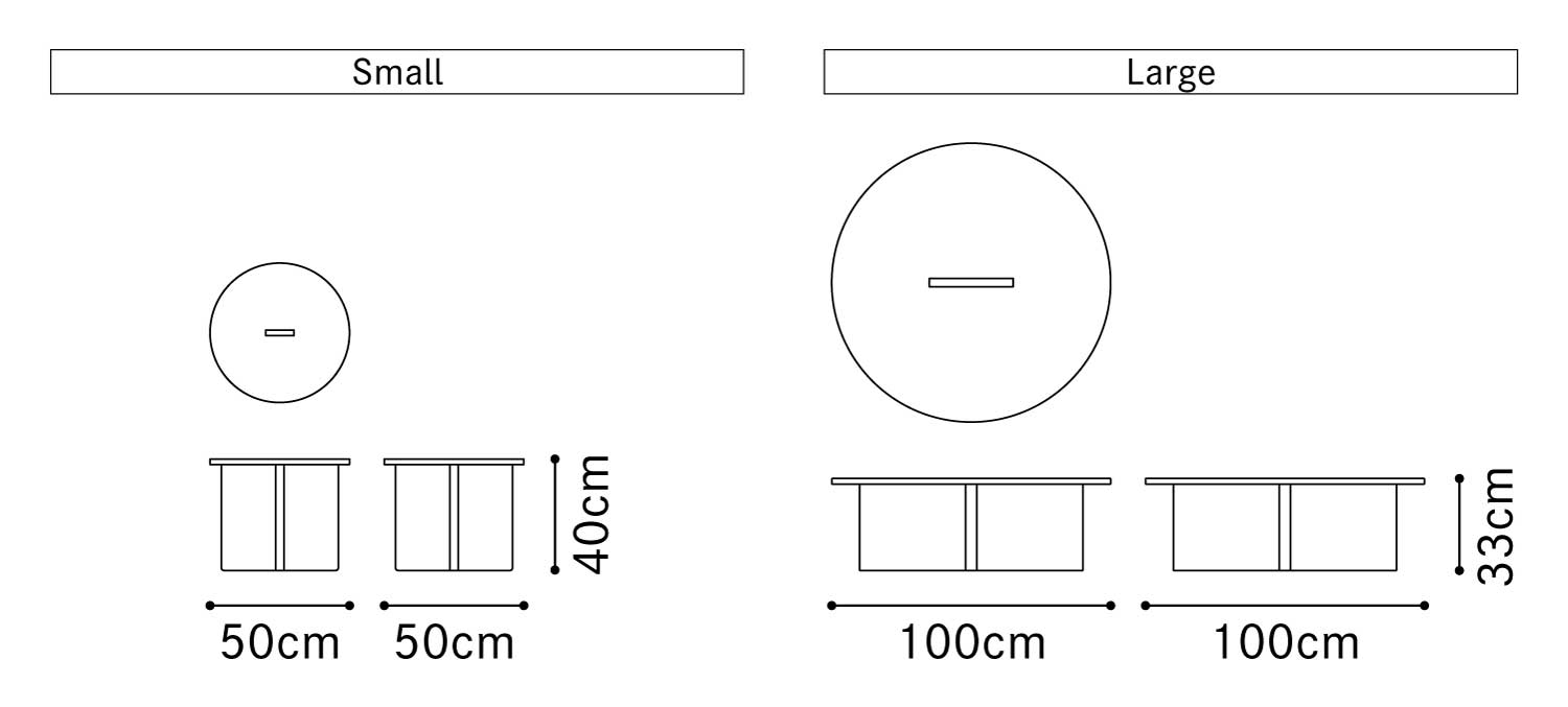 | サイズ | Small:W50 × D50 × H40cm Large:W100 × D100 × H33cm |