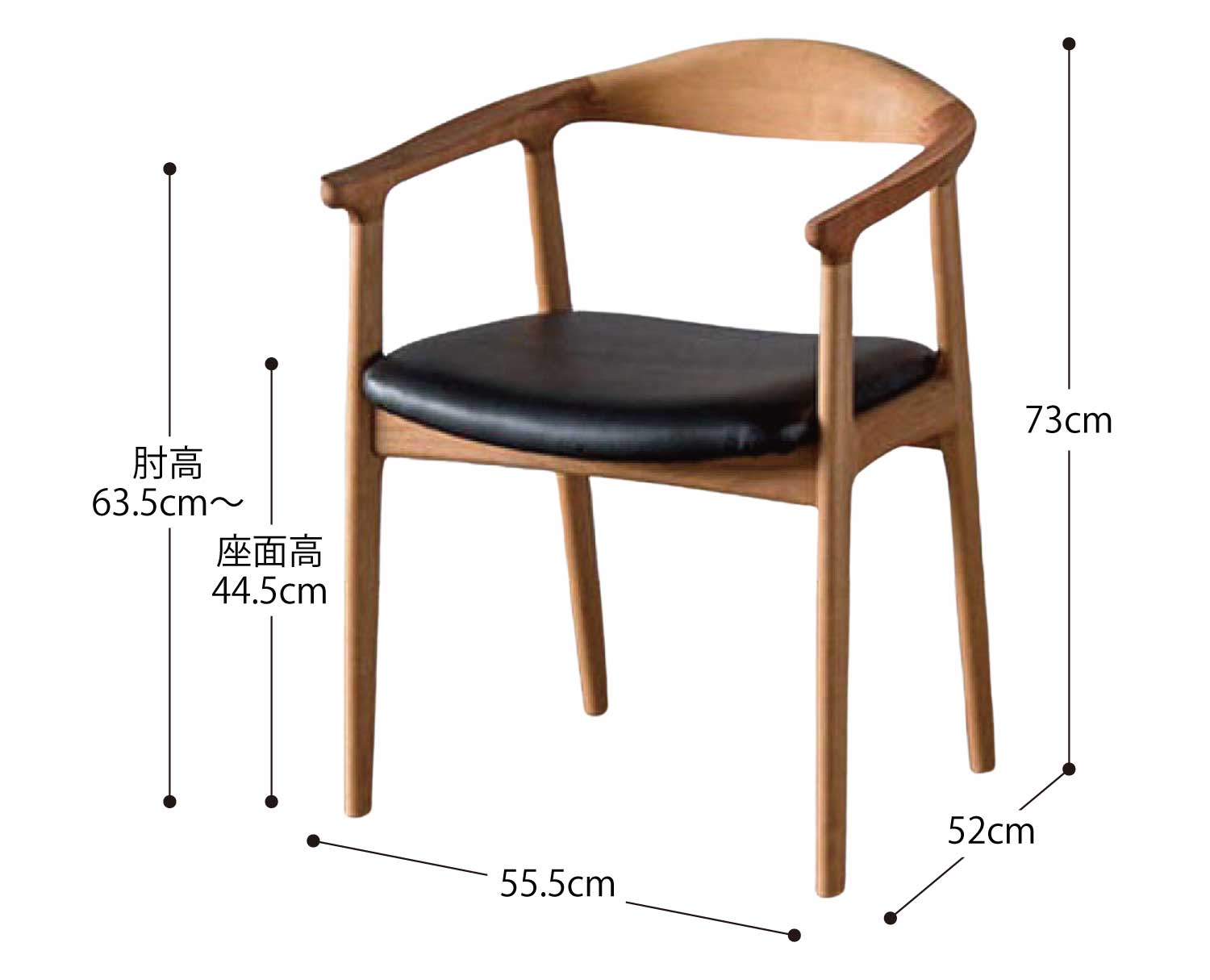 | サイズ | W55.5 × D52 × H73cm | SH44.5cm | AH63.5cm〜 |