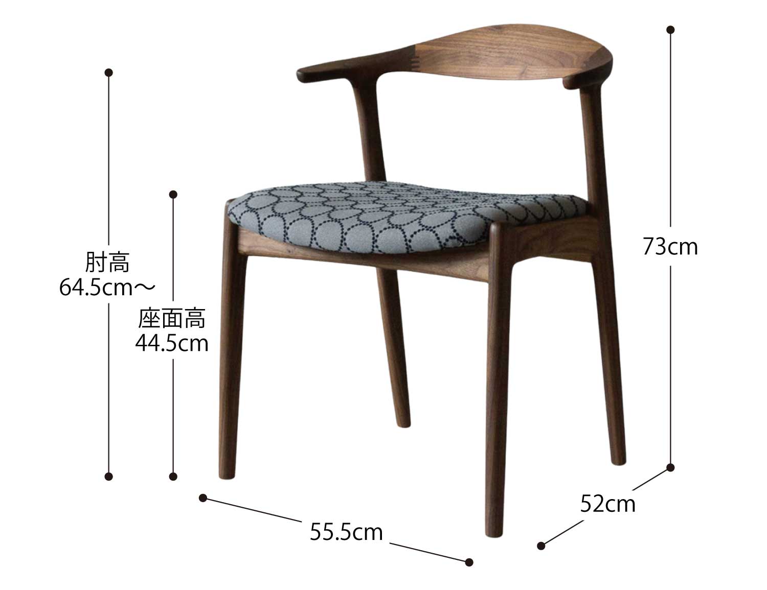 | サイズ | W55.5 × D52 × H73cm | SH44.5cm | AH64.5cm〜 |