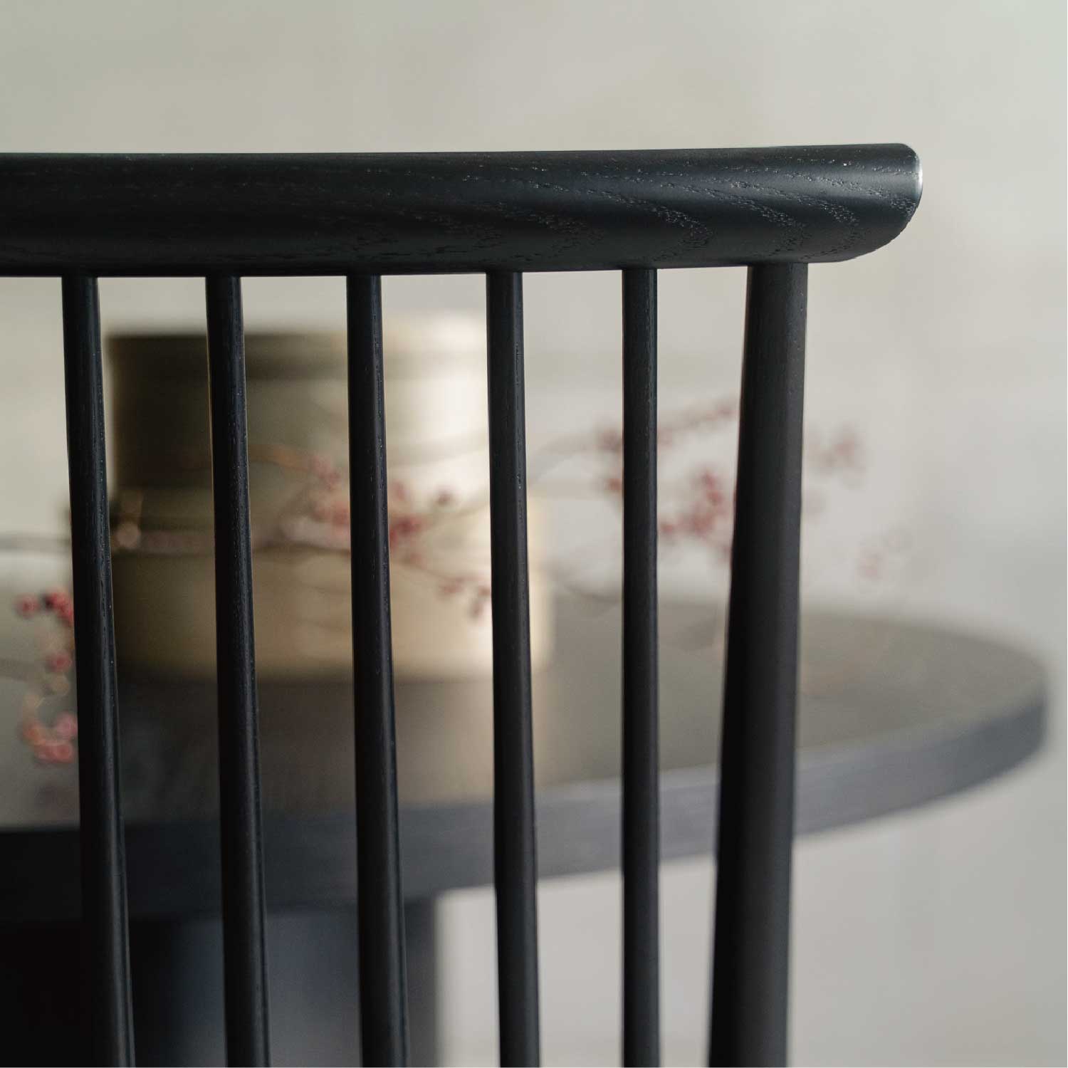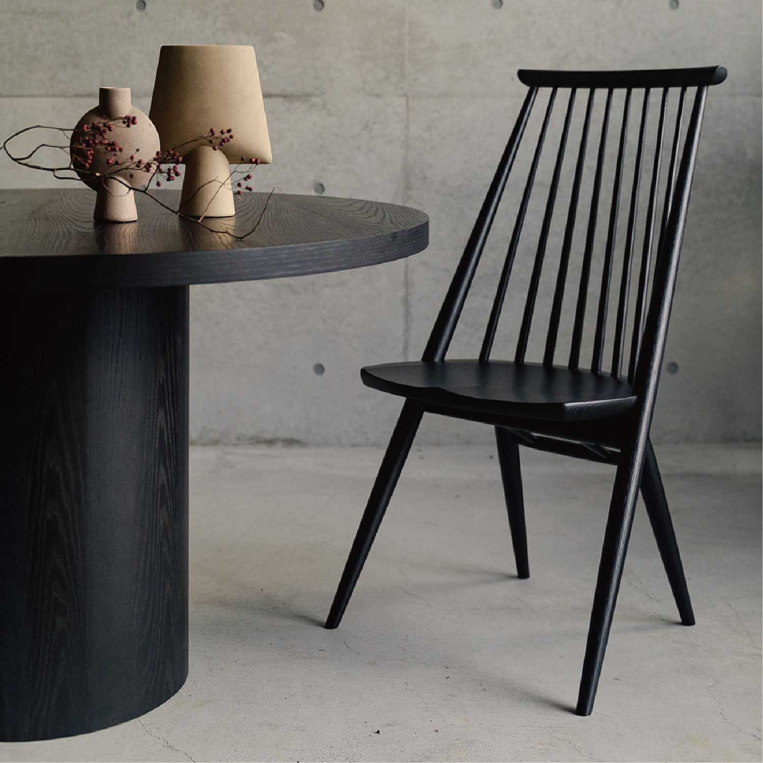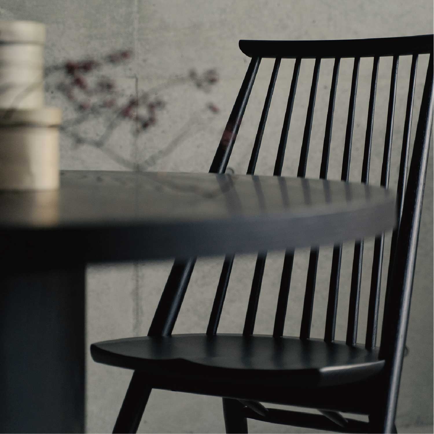 ハイバックの背もたれは、包み込まれるような座り心地です。また、背中の桟は向こう側が見えるので、ハイバックながら空間に圧迫感を与えません。ウォールナットとオークのコンビネーションの他に、オークのみでもお作りできますので空間に合わせコーディネートも自在です。
